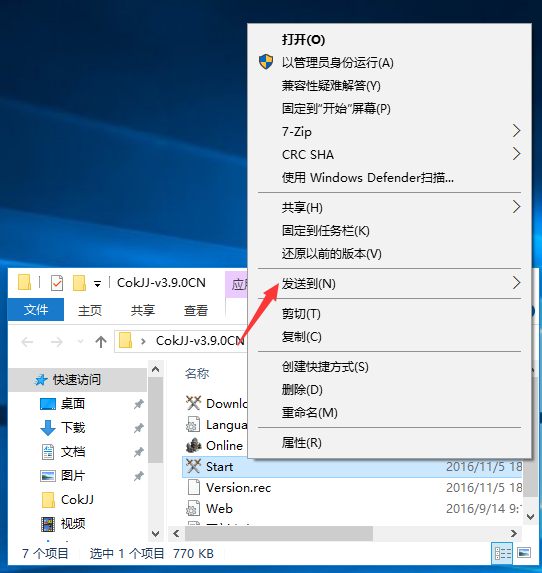 选择传送到桌面