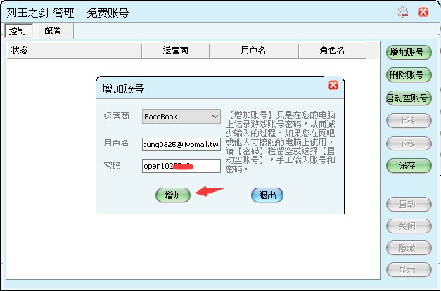 输入脸书帐号密码后点选增加。