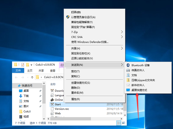 选择传送到桌面