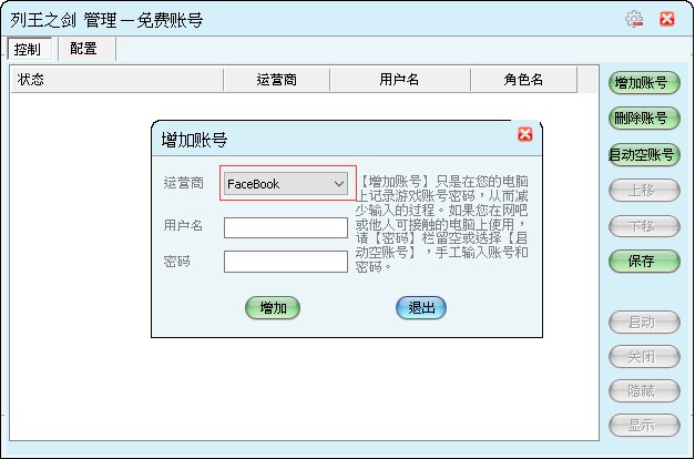 点选增加帐号:
