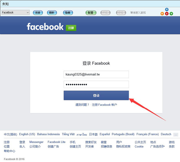 输入脸书帐号密码后点选增加。